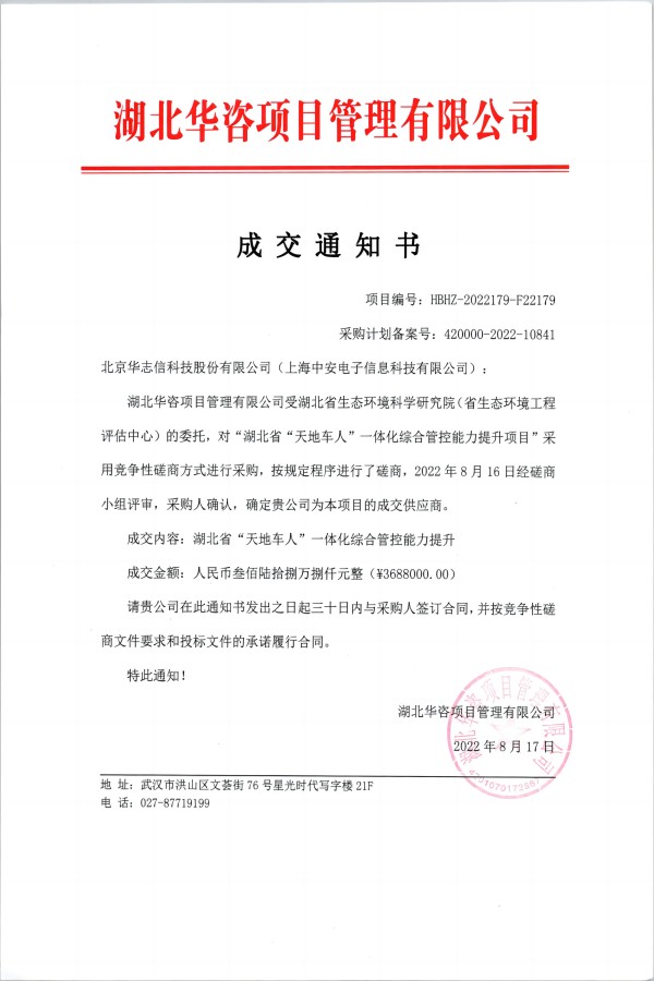 中安科技中標(biāo)湖北生態(tài)環(huán)科學(xué)院“湖北省‘天地車人’一體化綜合管控提升”項(xiàng)目(2022/10/10)
